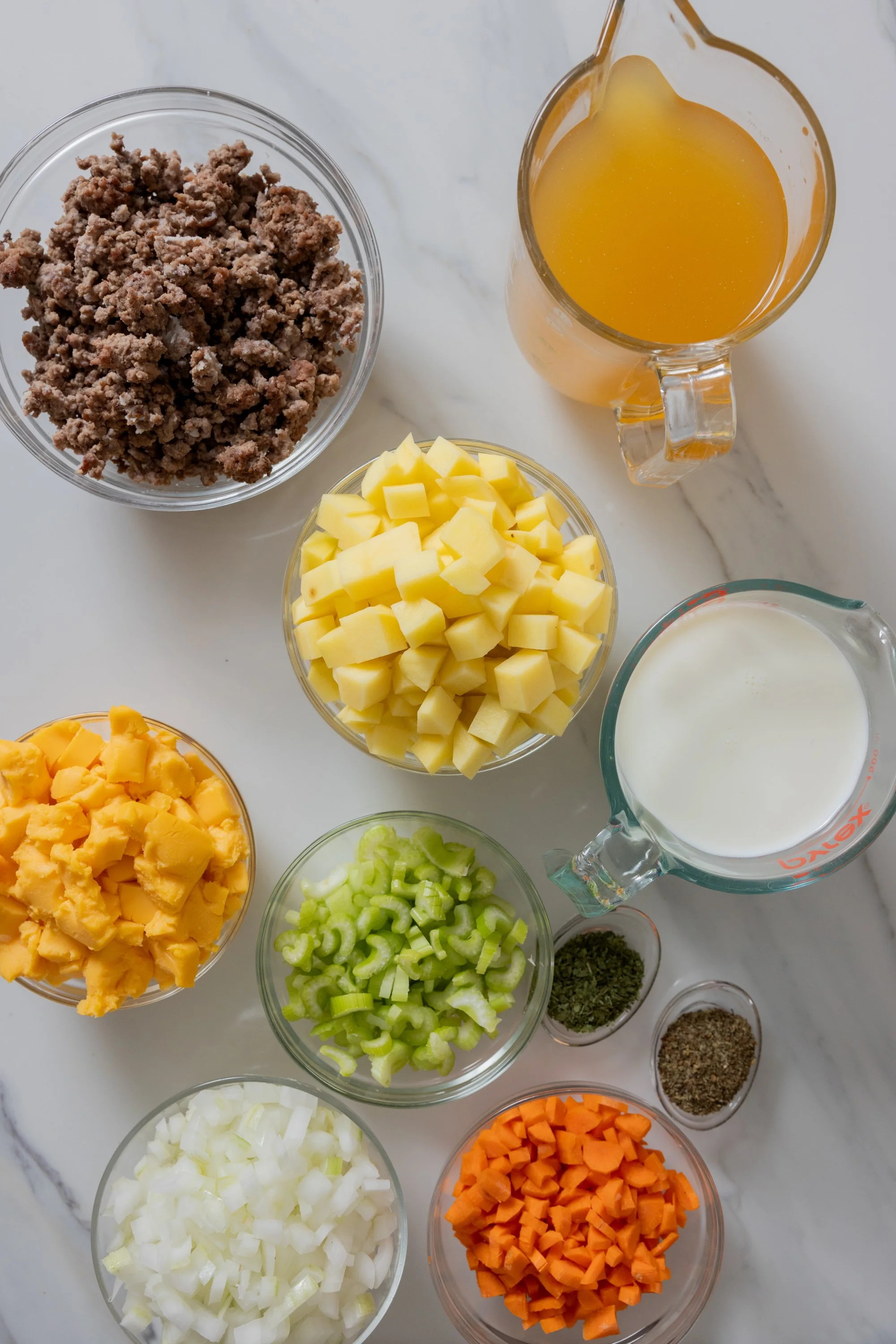 When I was in my early twenties, I had just married and had very little experience cooking. My new husband and I began attending a small church where the ladies were pros at cooking crock-pot dishes for the potluck dinners. This cheeseburger soup appeared often, and someone finally shared the recipe with me. That was nearly thirty years ago, and I still make this soup as soon as the weather gets chilly. My kids grew up on this treasure and I’m happy to share it with anyone, as someone did with me many years ago.