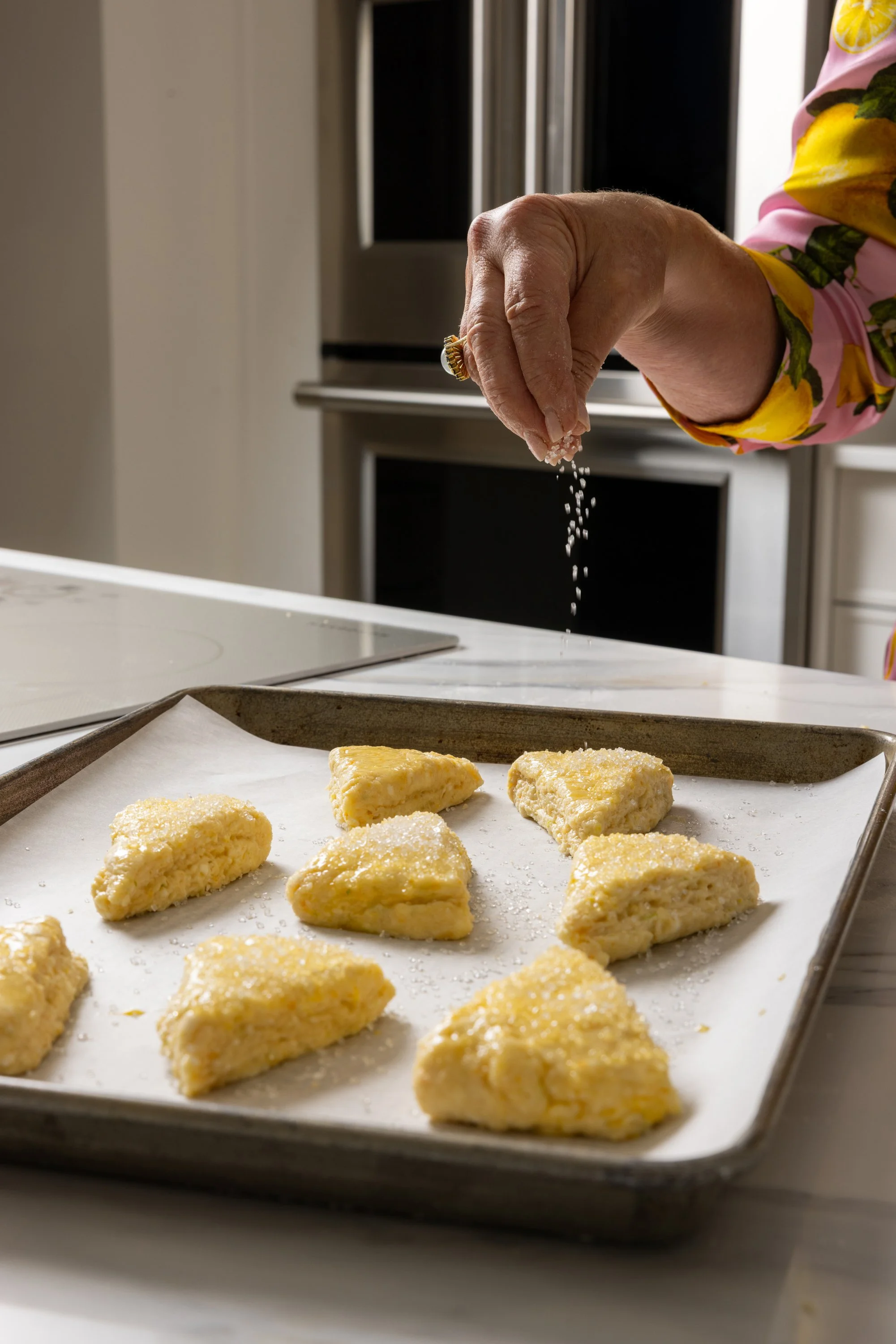 I love scones, whether they are sweet or savory. And they’re wonderful to make ahead by preparing the dough, cutting or scooping onto a parchment-lined platter, and freezing. Once they’re frozen just drop them into a freezer bag. Whenever you want a freshly baked scone or two, just pull them out of the freezer and bake. These citrus scones are a big hit at brunches and breakfast on holidays. They require a bit of zesting and juicing, but it’s worth it!