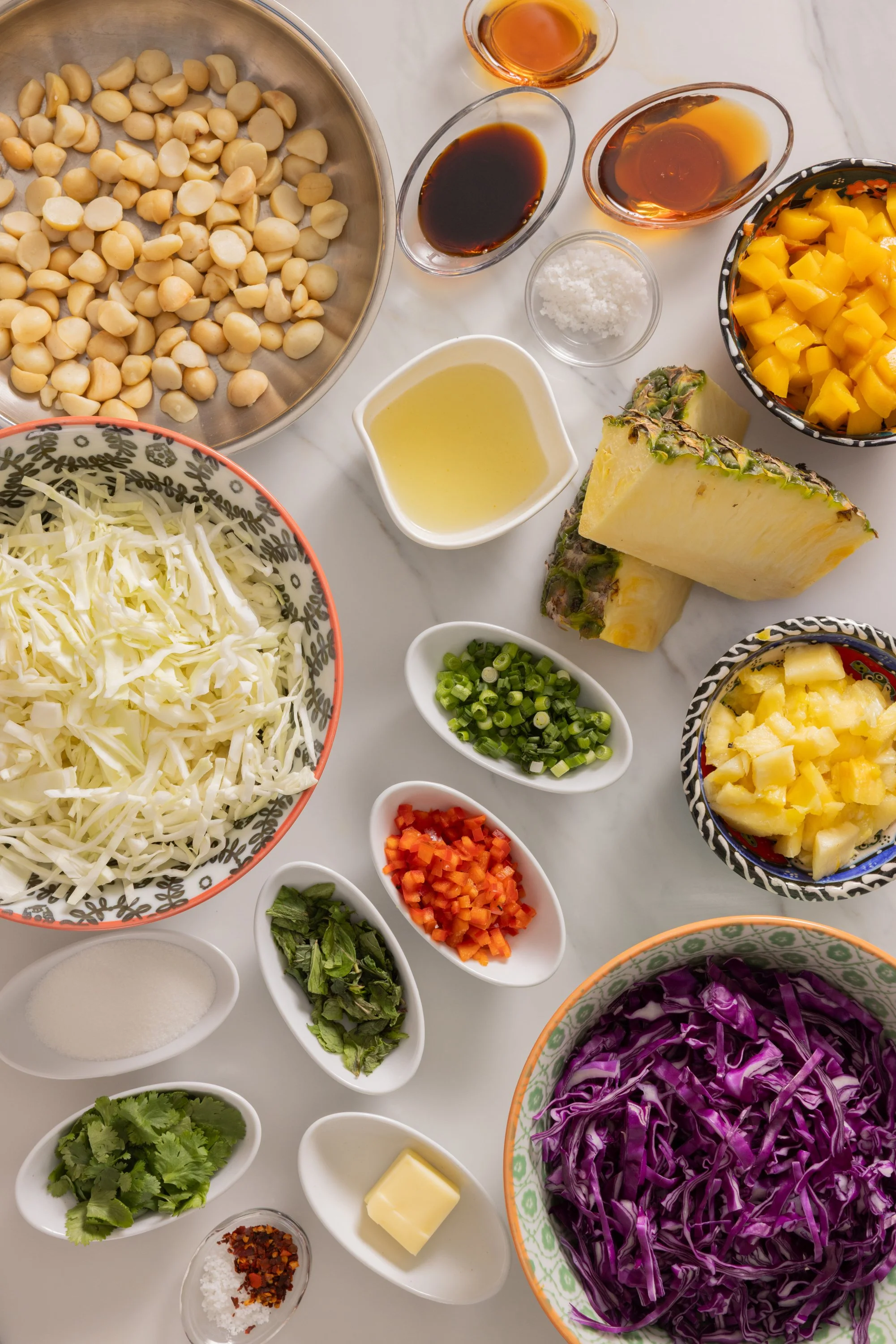 This is the kind of salad that will make you pause mid-bite and ask, "Wait, what’s in this?" It’s crunchy, sweet, salty, and just a little nutty (in all the best ways). I toss crisp cabbage with juicy mango and pineapple, then layer in the magic with candied nuts and a tangy-sweet dressing made with lime, sesame oil, and maple syrup. It’s a salad that’s bright, balanced, and full of unexpected flavor.