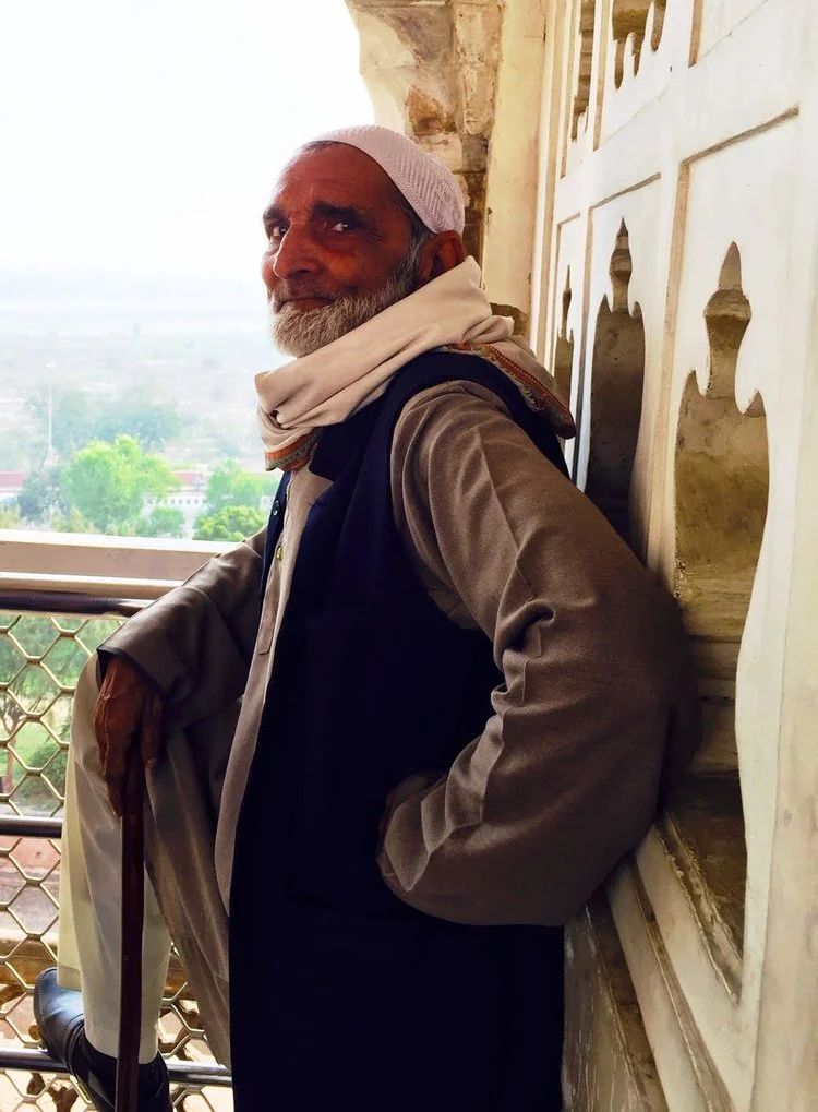 Agra Fort is also a World Heritage site and is about 2.5 km northwest of the Taj Mahal. It is really more of a walled city. When we arrived, there was an elderly gentleman at the gate who asked if he could be my guide. He was a licensed tour guide and had lived in Agra most of his life. He walked us through the fort and explained each area in detail, but not without asking me to give him my iPhone at each stop so he could take my photo. It was really quite humorous, and I convinced him a couple of times to let me take his photo. He explained that the present-day structure was built by the Mughals, though a fort had stood there since the 11th century. Sikanddar Lodi (1488-1517) was the first Sultan of Delhi who shifted to Agra to live in the fort. He governed the country from there and Agra assumed the importance of the second capital.