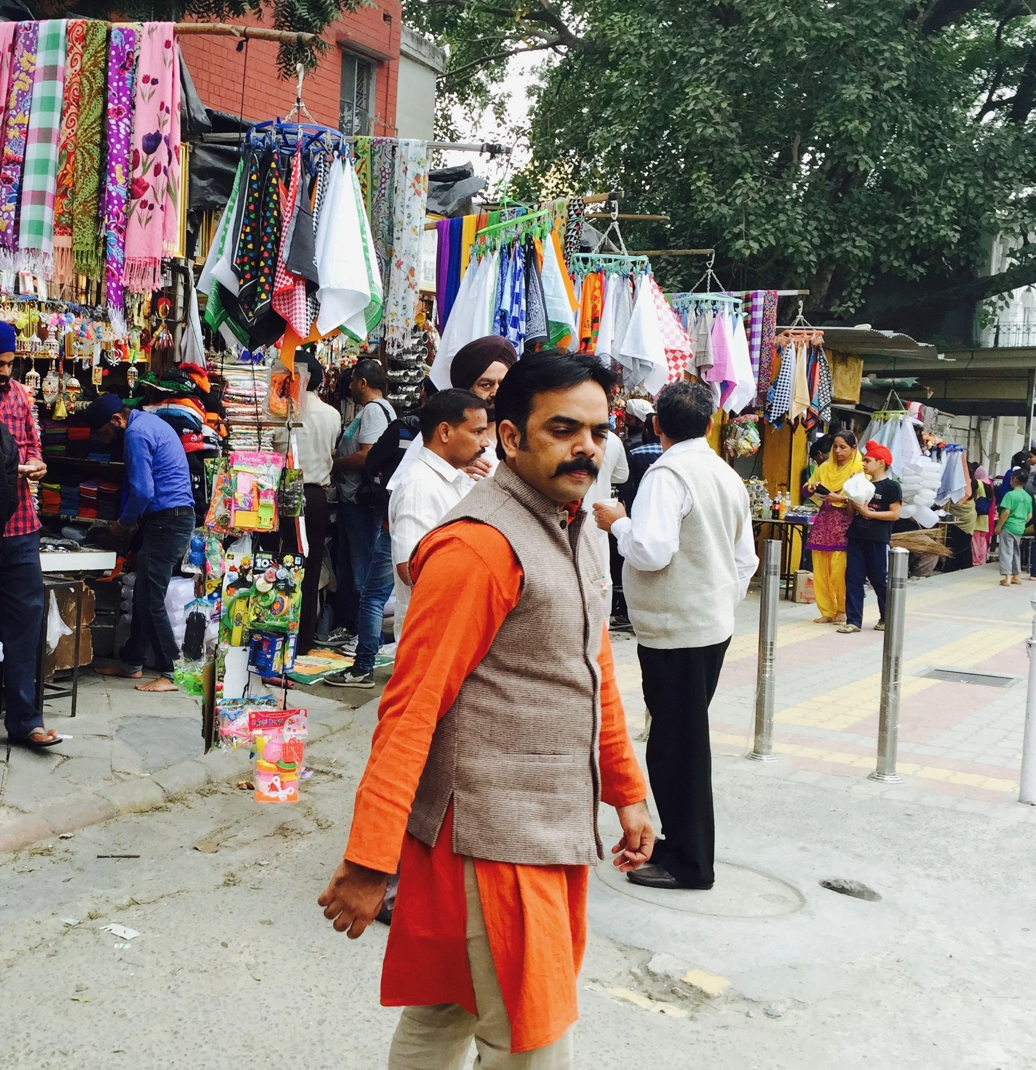 The ITC Maurya had its own floor for single women travelers. I also had my own concierge, a female guard outside my room, and every amenity they could think of in the room. And then there was the television channel that was entirely about the ITC hotel restaurants and chefs. I could not get enough! The hotel restaurant, Bukhara, was a real treat for Vaibhav and me as we donned our plaid bibs and ate tiki chicken, tandoor shrimp, naan, curried paneer, coriander chutney and dal makhani that dripped down our chins and onto that attractive bib. But enough about that wonderful hotel and their food!