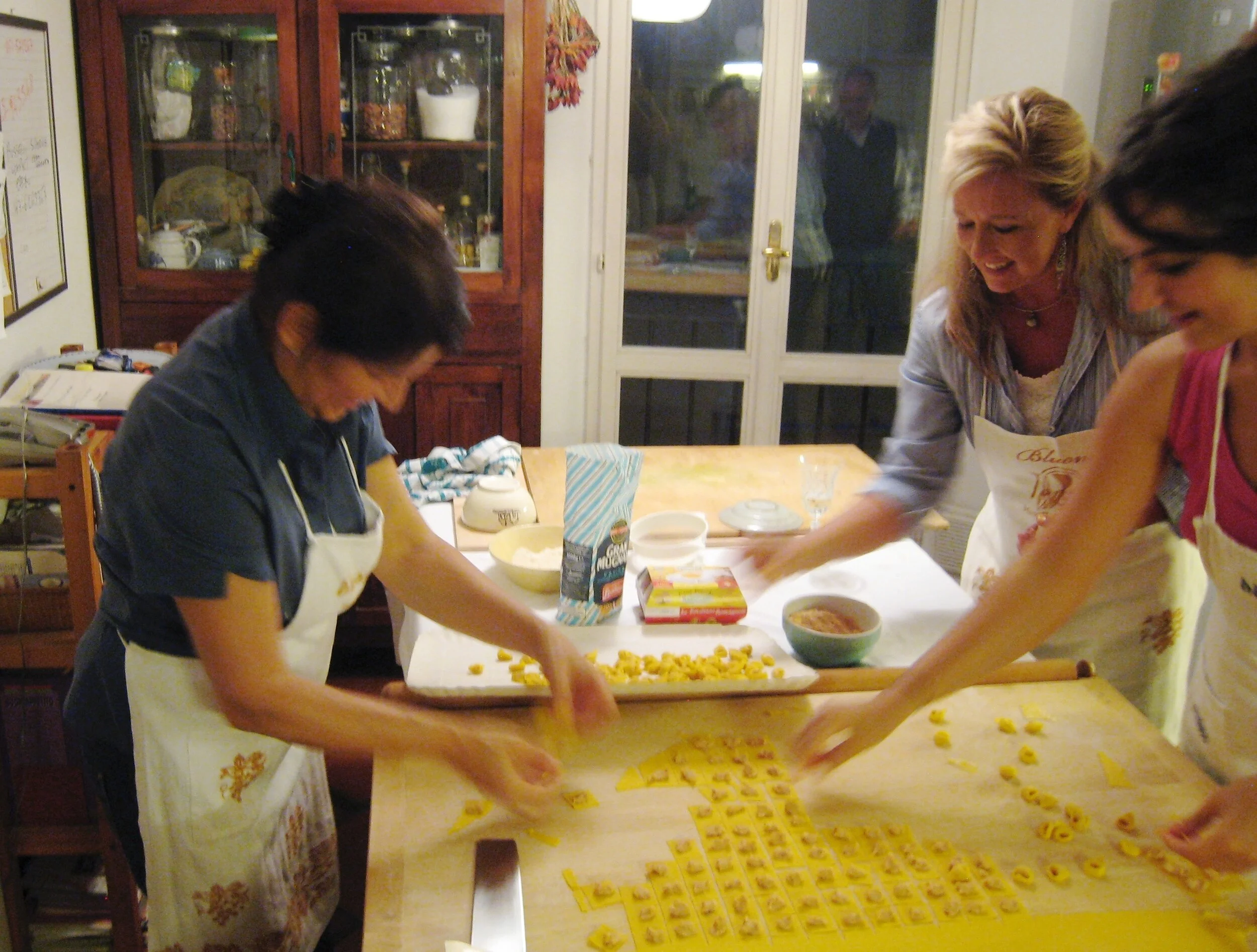 The Toris and I became very good friends that day, and we kept in touch for years. Francesca came to visit me a year later and we taught many cooking classes in Tulsa and Dallas, hand-rolling pasta and making hundreds of tortellini for days. We also made pasta bolognese, using the recipe passed down from her grandmother. She even brought me a rolling pin she had carried on the plane and an apron with my name embroidered on it.