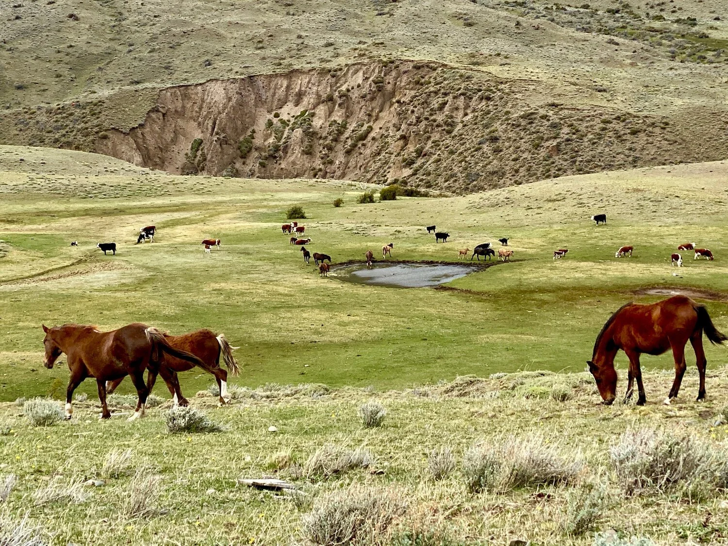 Day three started with a long drive to a completely different landscape than we had seen on previous days. We soon learned why it was named The Baguales, the Wild Place. The mountains were dry, but covered with the native black bushes, and spring flowers were budding everywhere. We saw fields of horses with many new foals, as well as herds of cattle scattered with baby calves nursed by their mamas.