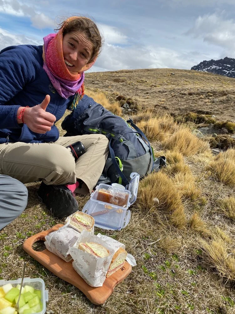 Our second day started early as Michelle drove us two hours to the Torre Del Paine National Park where we walked Lake Mordejhold, which was the color of pale blue topaz. The mountains were so majestic they didn’t look real. We walked over an hour and saw a massive waterfall and guanacos everywhere. Michelle took us to a picnic area where she prepared lunch on her portable cooktop. She seared Chilean Provalone cheese and served it with salad and corn soup she kept in a thermos. She heated braised beef and spaeztle and served it with wine as we sat looking at the mountains in the most perfect picnic setting you can imagine. After lunch, we hiked the steep Mirador Condor, a cliff where condors often settle to watch for their prey. It was a difficult climb, especially after such a full lunch, but worth every step! The views from the top of the cliff were breathtaking. We were the only ones there, and the silence was nearly deafening as we took in the views of mountains, lake, and valleys in every direction. The ride back to Awasi was quiet as we were tired and reflective of the beauty we had seen all day.